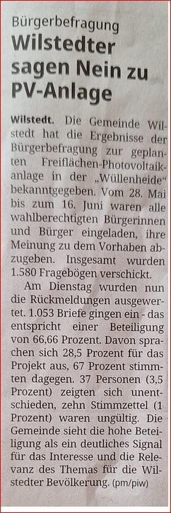 Ernstgenommene Bürger in Wilstedt stimmen ab. Und 67% geben dem Rat ein klares NEIN!