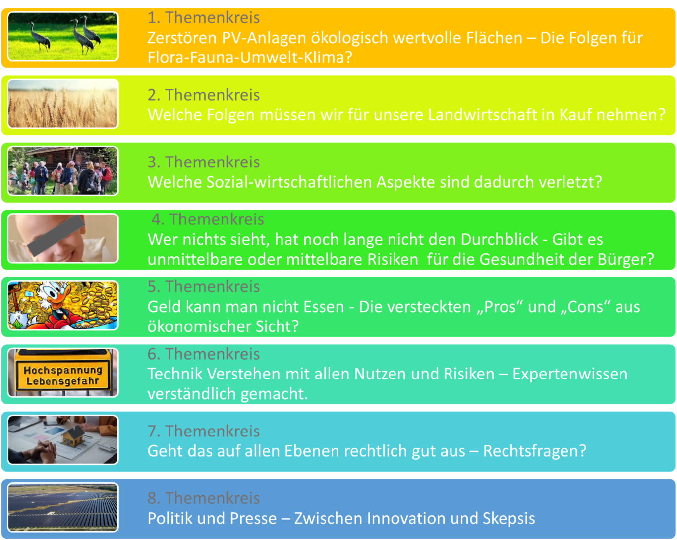 " Ein Solarpark kann verschiedene potenzielle Umweltauswirkungen haben, darunter Blendung, Lärm, Elektrosmog, Wärmeentwicklung und Brandschutzbedenken sind nur einige Faktoren - Wollen wir das wirklich in unmittelbarer Dorflage erleiden ?"