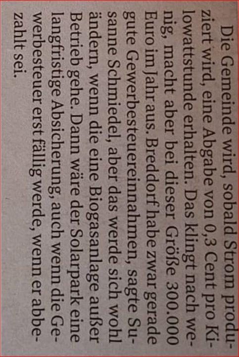 ja, es geht um erneuerbare Energie und nicht um Geld in der Gemeindekasse!